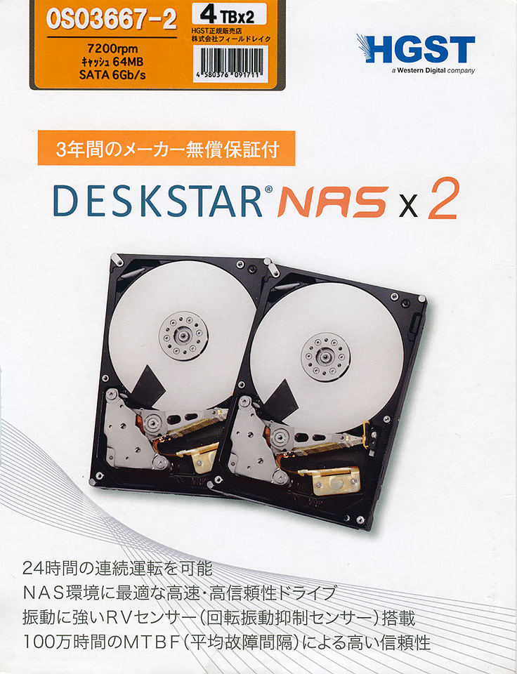 <昨年買ったHGSTの4T×2のHDD>